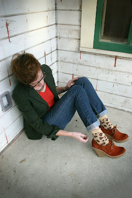 YOu look tired…but still great in this outfit…..I adore those socks…too cute!!