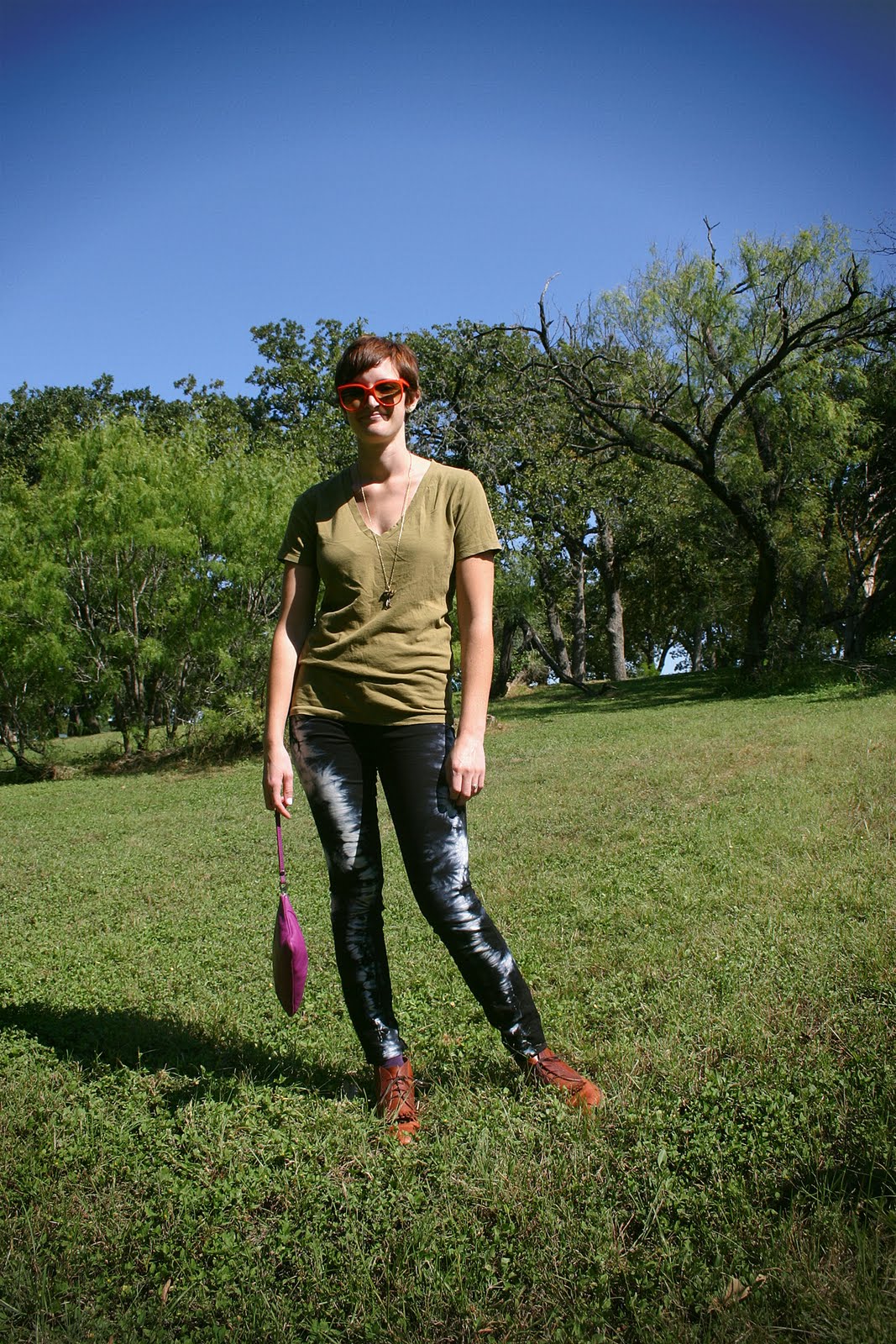 Well, my buddy Lacy and I had a successful discount Saturday visiting Last Call and Savers, where I scored a bunch of patterned gems, including these weird tie-dyed pants ($21 marked down from $200!), which I styled for a beautiful Sunday of riding bikes and hanging out outside. This location may be a one-time only thing because of all the frigging burrs that attacked me. I still have a splinter of one in my finger. Dangerous blogging! I’m still super into these Madewell boots, too. Oh they are so comfortable!